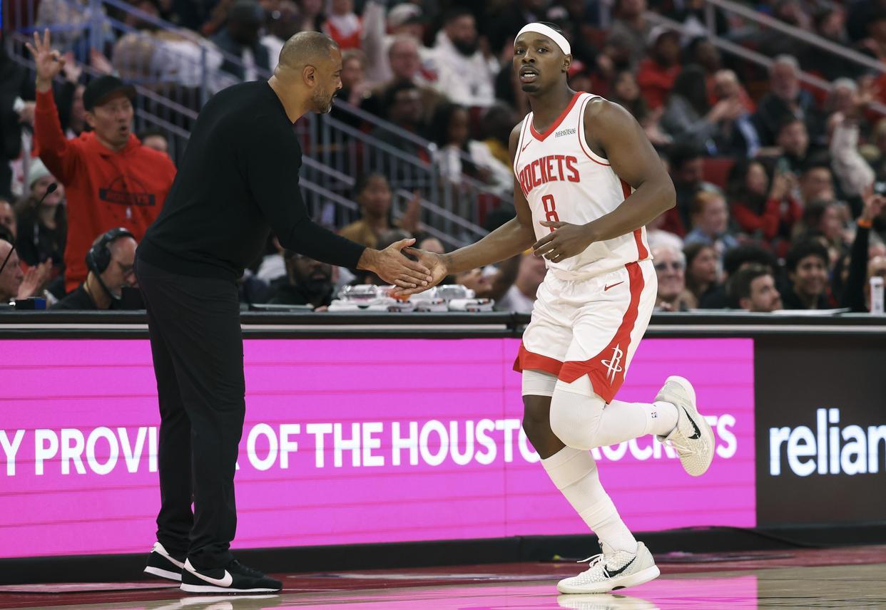 火箭队这场比赛之所以能够大胜湖人队,原因就在于火箭队用双核搭配了6位射手。申京和阿门汤普森在进攻端是核心,而在他们身边,火箭队乌度卡使用的6位射手分别是谢泼德、霍勒迪、芬尼史密斯、小史密斯、伊森以及奥科吉。别看芬尼史密斯本赛季三分命中率不足30%,但他有三分的功底在。上赛季的季后赛,他的三分命中率高达36%,而上赛季的常规赛,他的三分命中率在42%。